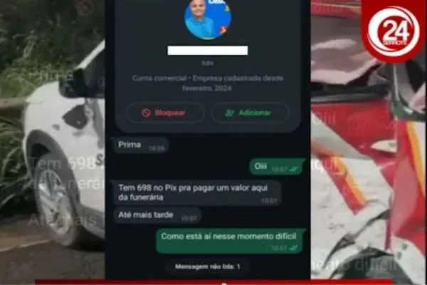 “Tem 698 no pix pra pagar um valor aqui da funerária” Na manhã deste domingo (06), golpistas utilizaram um aplicativo