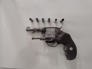 Os militares seguiram para o local, onde identificaram o suspeito, que posteriormente confessou ser o autor do disparo. Segundo o rapaz identificado pelas iniciais L.S.M, 45 anos, para efetuar o disparo, teria utilizado um revólver cal. 32, que estaria guardado em sua residência. A arma de fogo foi apreendida, contendo seis munições, sendo cinco intactas e uma deflagrada.